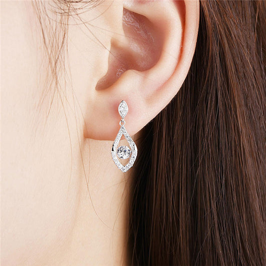 White Gold Olive Shape Full Stones Beating Drop Earrings