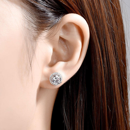 White Gold Classic Full Stones Circle Stud Earrings