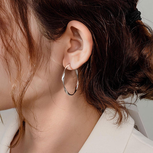 White Gold Steel Wire Rope Big Hoop Earrings