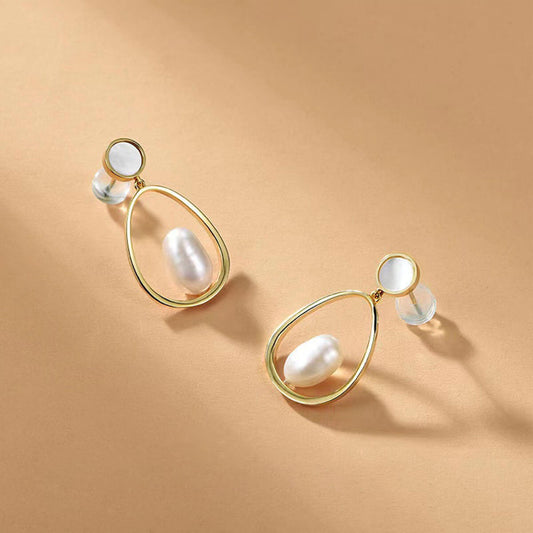 Golden Hollow Deasign Organic Pearl Drop Earrings