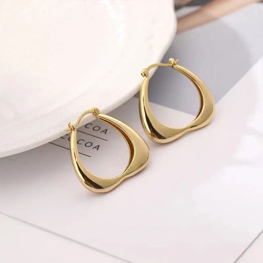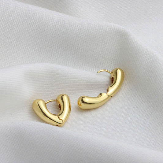 Golden Midi Heart Shape Chunky Hoop Earrings