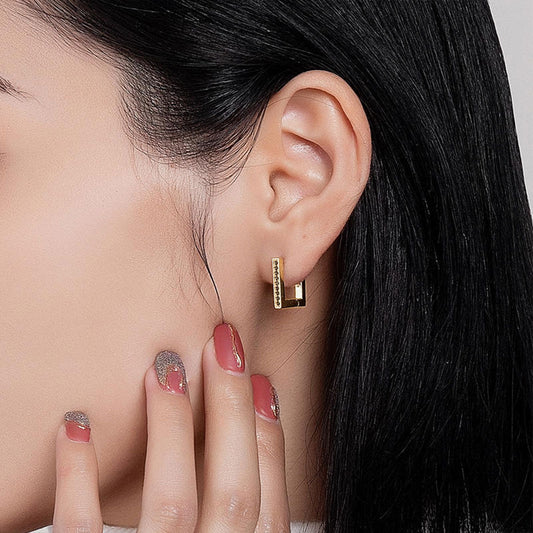 Gold Black Stones Block Square Hoop Earrings