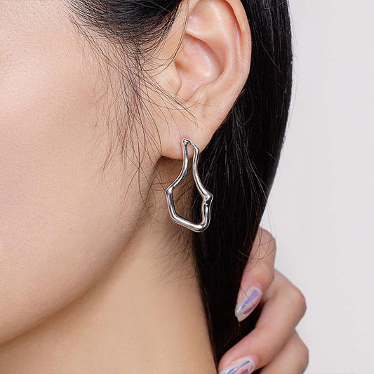 White Gold Cool Design Irregular Distortion Snap Hoop Earrings
