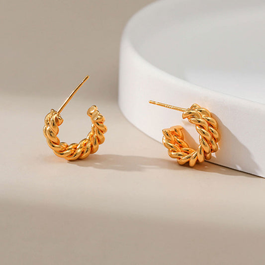 White Gold Rope Shape Chunky Hoop Earrings