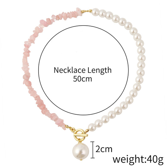 Half Design Pearls & Irregular Pink Stones Link Necklace