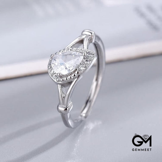 Amethyst White Zircon Water Drop Open Adjustable Ring