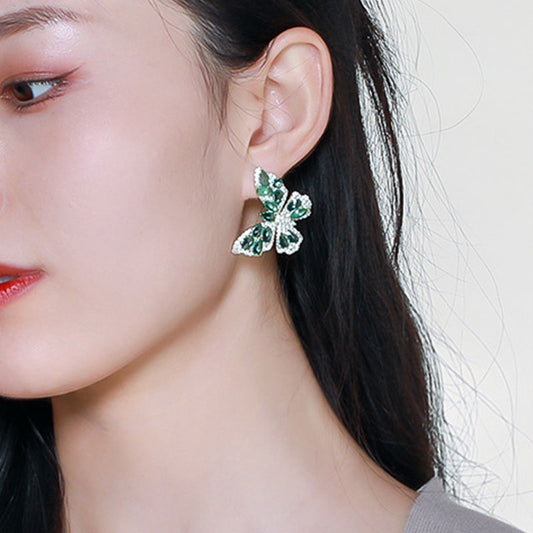Artificial Gemstone Butterfly Heavy Industry Earrings