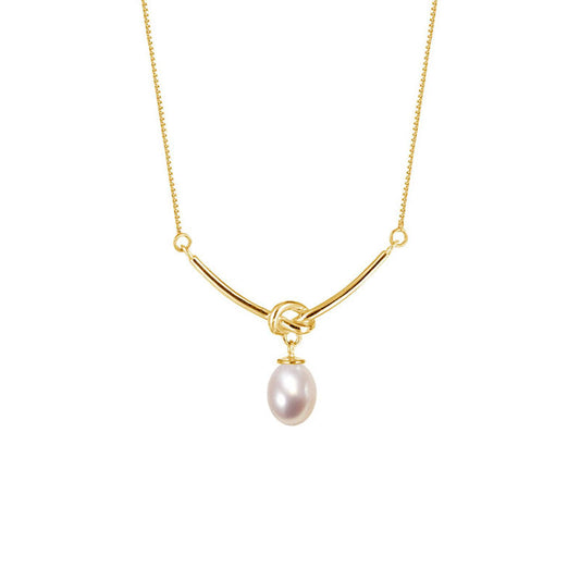 S925 Sterling Silver Knot Freshwater Pearl Necklace