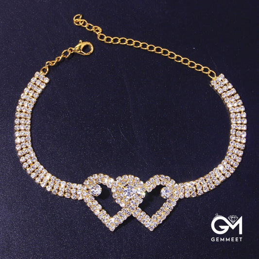 Beaded and Diamond Pendant with Adjustable Alloy Bracelet