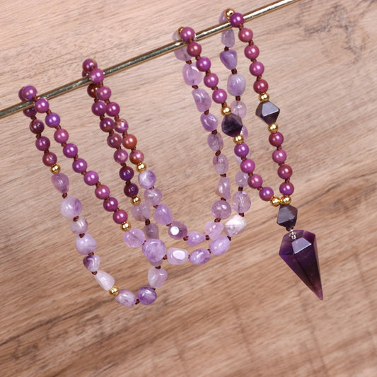 Shell Curved Black Copper Wire Crystal Tree of Life Necklace