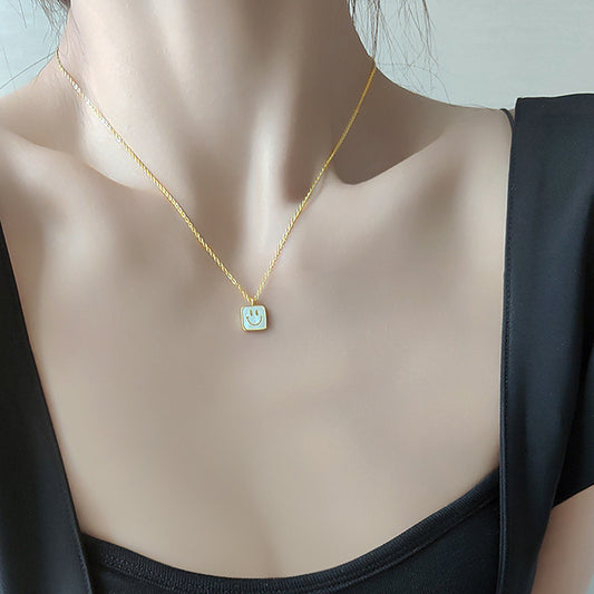 Shell Smiley Face Square Light Luxury Titanium Steel Necklace Simple and Versatile