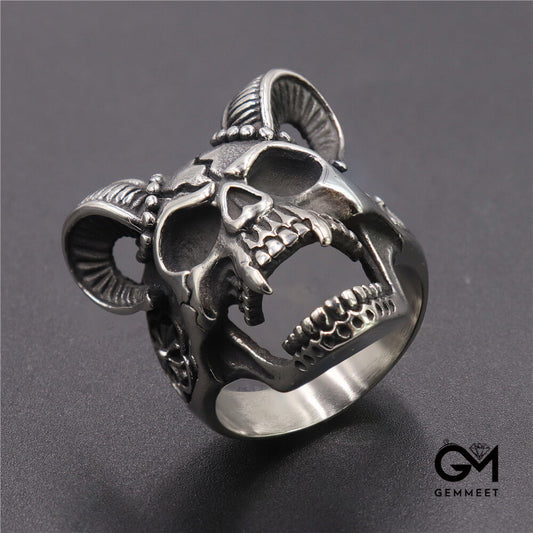 Beauty and The Beast Skull Horn Titanium Steel Ring