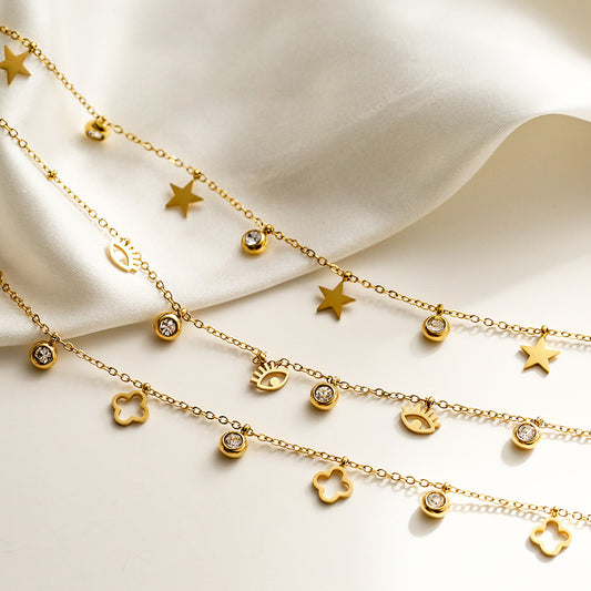 Star & Evil Eyes 4 Leaf-Clover Symbol Necklace for Women