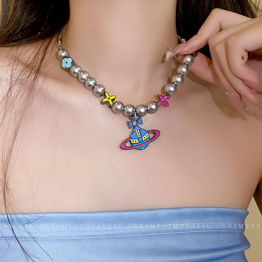 Titanium Steel Pearl Flower Star Cartoon Necklace