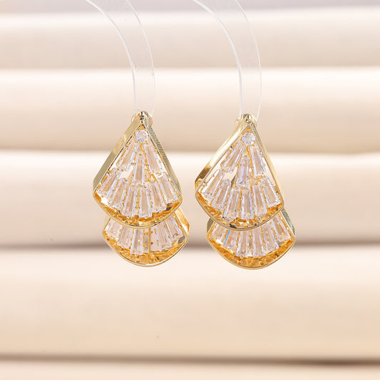 Vintage Flower Water Drop Inlaid Blue Zircon Earrings