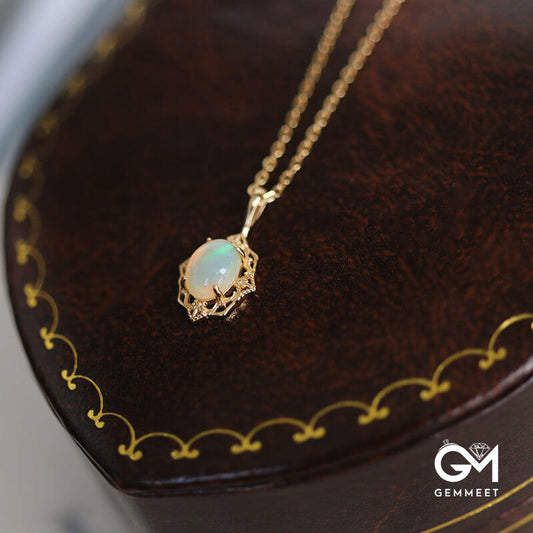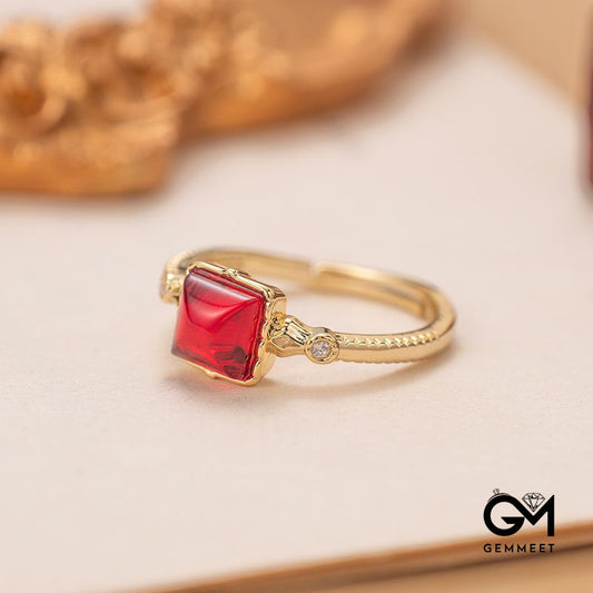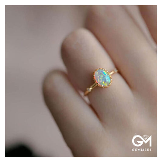 Vintage Oil Painting Amber Opal Gold Plated Ring