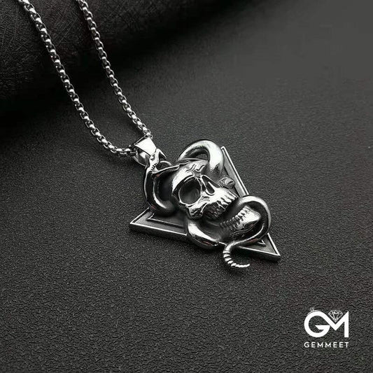 Vintage Skull Pendant Antique Silver 60cm Chain