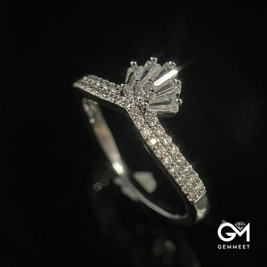 White Gold Double Channel Set Stones Moissanite Adjustable Ring