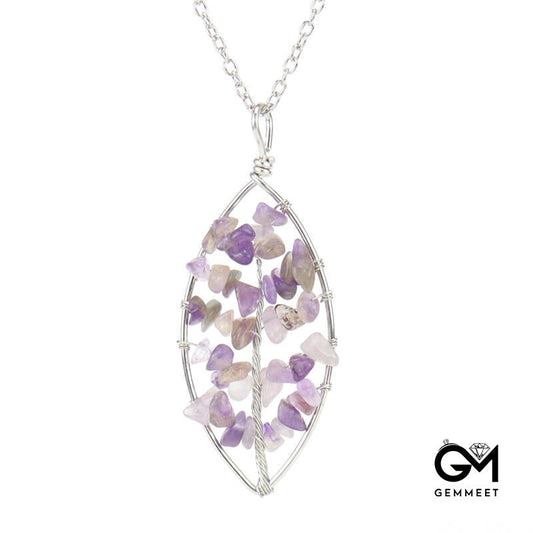 Wrap Arc Silver Tree of Life Crystal Leaf Necklace