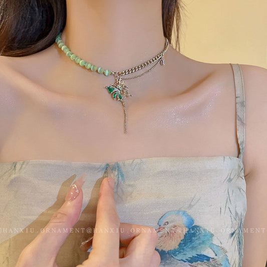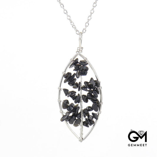 Wrapped Silver Tree of Life Crystal Leaf Necklace