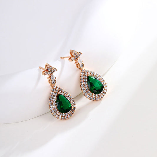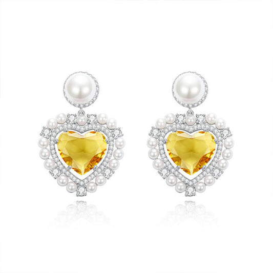 Zircon Yellow Diamond Heart and Pearl Earrings Brilliant Pink Diamond Stud Earrings