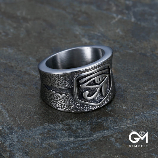 Boiled Black Polished Ancient Egyptian Eye of Horus Ring