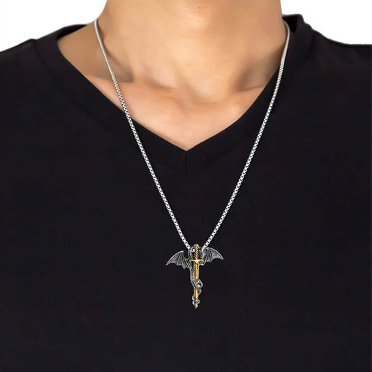 Clear Crystal Copper Vintage Sword Pendant Gemstone Necklace