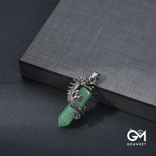 Coiling Dragon Hexagon Column Crystal Pendant Necklace