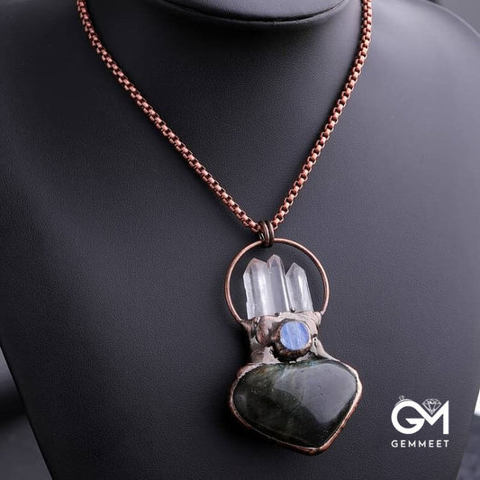 Clear Quartz Kyanite Heart Shape Labradorite Gemstone Necklace