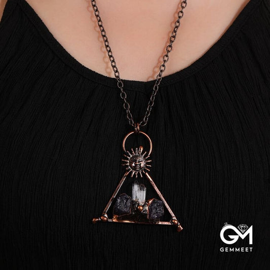 Copper Sun Clear Quartz Amethyst Gemstone Necklace
