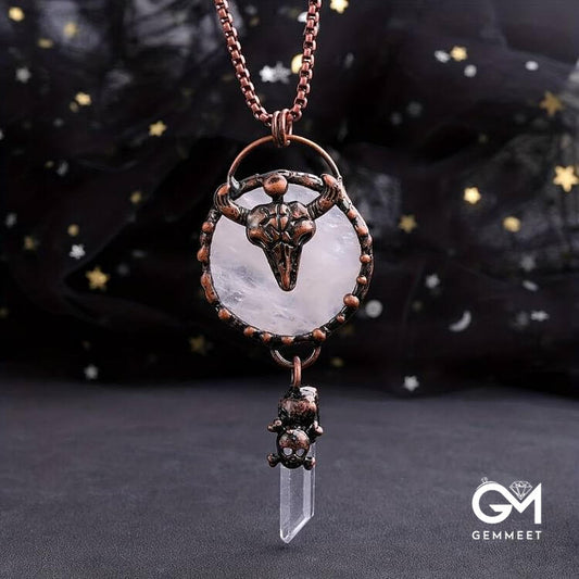 Copper Ox Head With Clear Quartz Gemstone Necklace