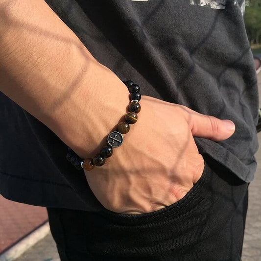 8mm Natural Tiger Eye Beaded Men Cross Bracelet