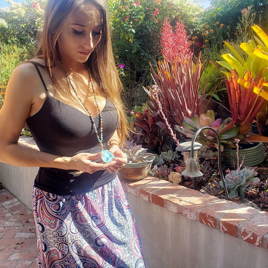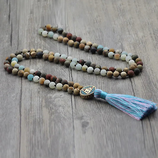 Amazonite Beaded Necklace Tassel Agate Pendant Mala Necklace