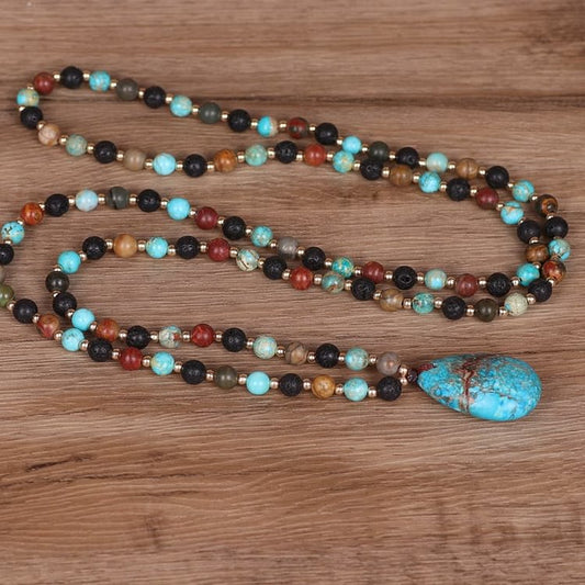 Turquoise Drop Shape Pendant Mala Beaded Necklace