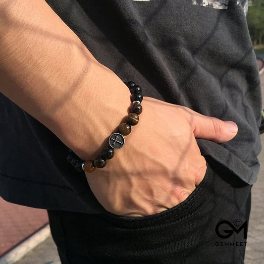 3Pcs/Set Tiger Eye Stone Beaded Men Cross Bracelet