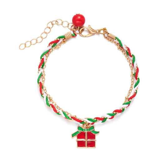 Drop Oil Christmas Tree Bead Braided Twist Bracelet