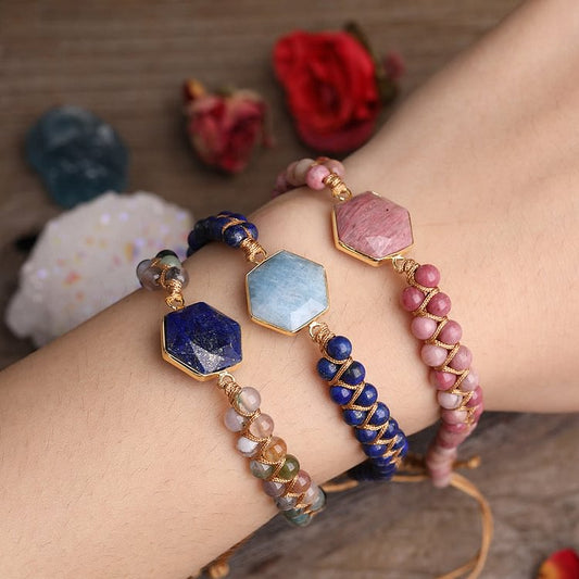 Raw Crystal Hexagon Braided Beaded Bracelet