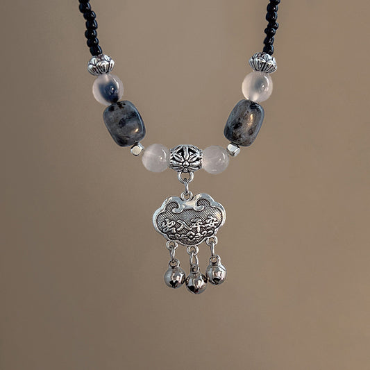Peace Lock Flower Rice Bead Necklace