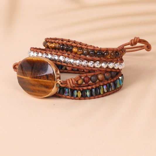 Tiger Eye Beads Braided Leather Bracelet