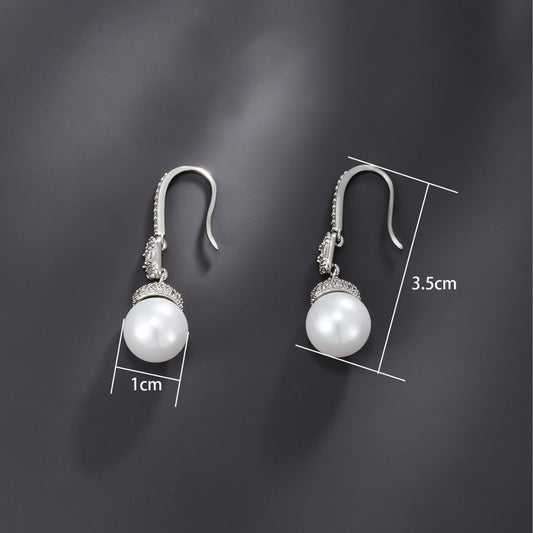 Imitation Pearl and Oyster Bead Earrings with Zirconia