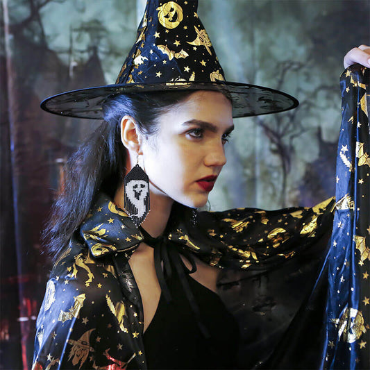 Halloween Little Ghost Witch Hat Stitching Bead Earrings