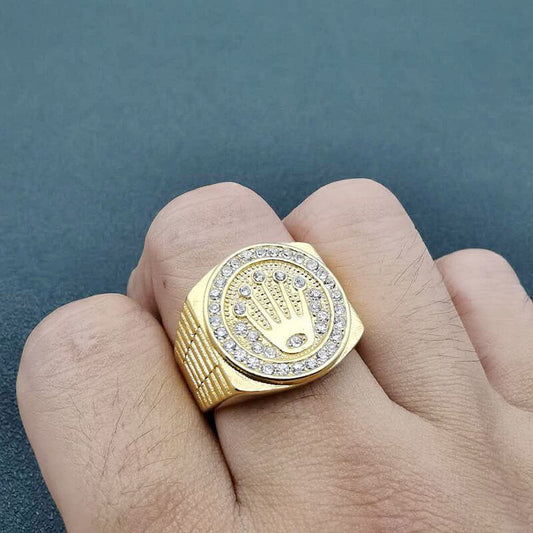 New Stainless Steel Crown Three Bead Ring Hip Hop Nightclub Hiphop Titanium Steel Men's Ring