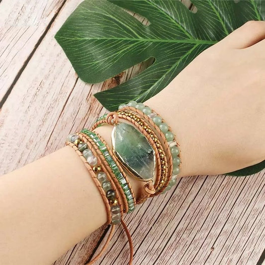 Green Stones Fold Wear Bead Bracelet