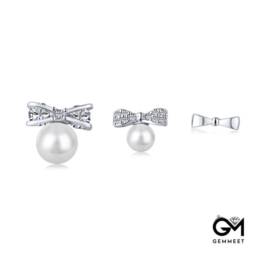 S925 Sterling Silver Bow Beaded Pearl Stud Earrings