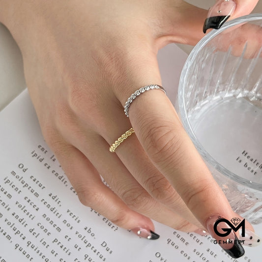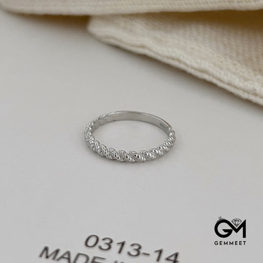 S925 Sterling Silver Round Bead Twist Simple Ring