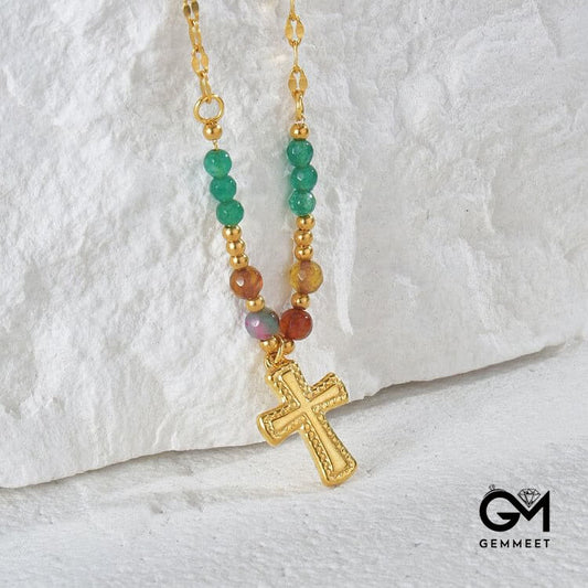 Crystal Beads Stainless Steel Cross Necklace
