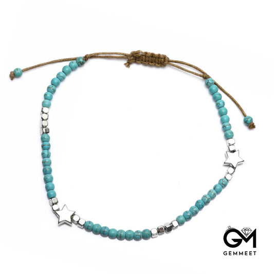 Bohemian Pentagram Turquoise Star Cube Bead Anklet