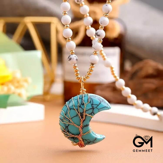 Moon Shape Crystal Tree Of Life Beads Necklace