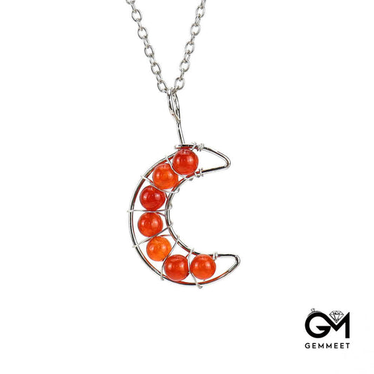 Crystal Beads Around Silk Moon Pendant Necklace