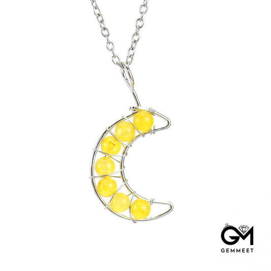 Crystal Beads Moon Pendant Necklace
